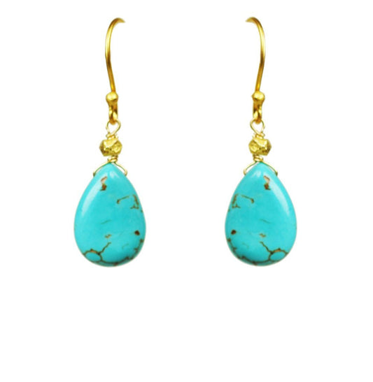 Turquoise Tear Drop Earrings with 18kt Gold Plated Earwires