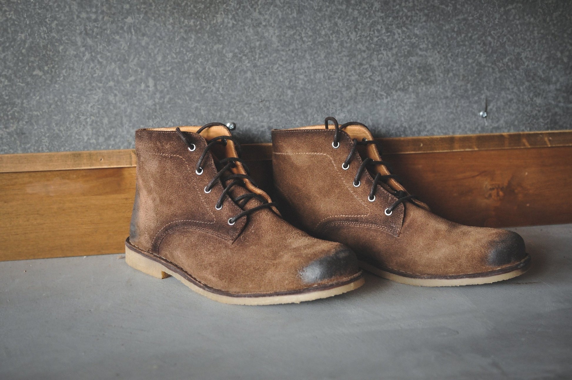The original “desert boot” was created as a comfortable casual shoe able to survive harsh desert conditions. We think our version works just as well walking downtown streets or propped up on the railing at your favorite watering hole. We made ours just a tad taller than the classic, with 5 eyelets in place of 2 or 3 giving a fresh twist to an old standard.