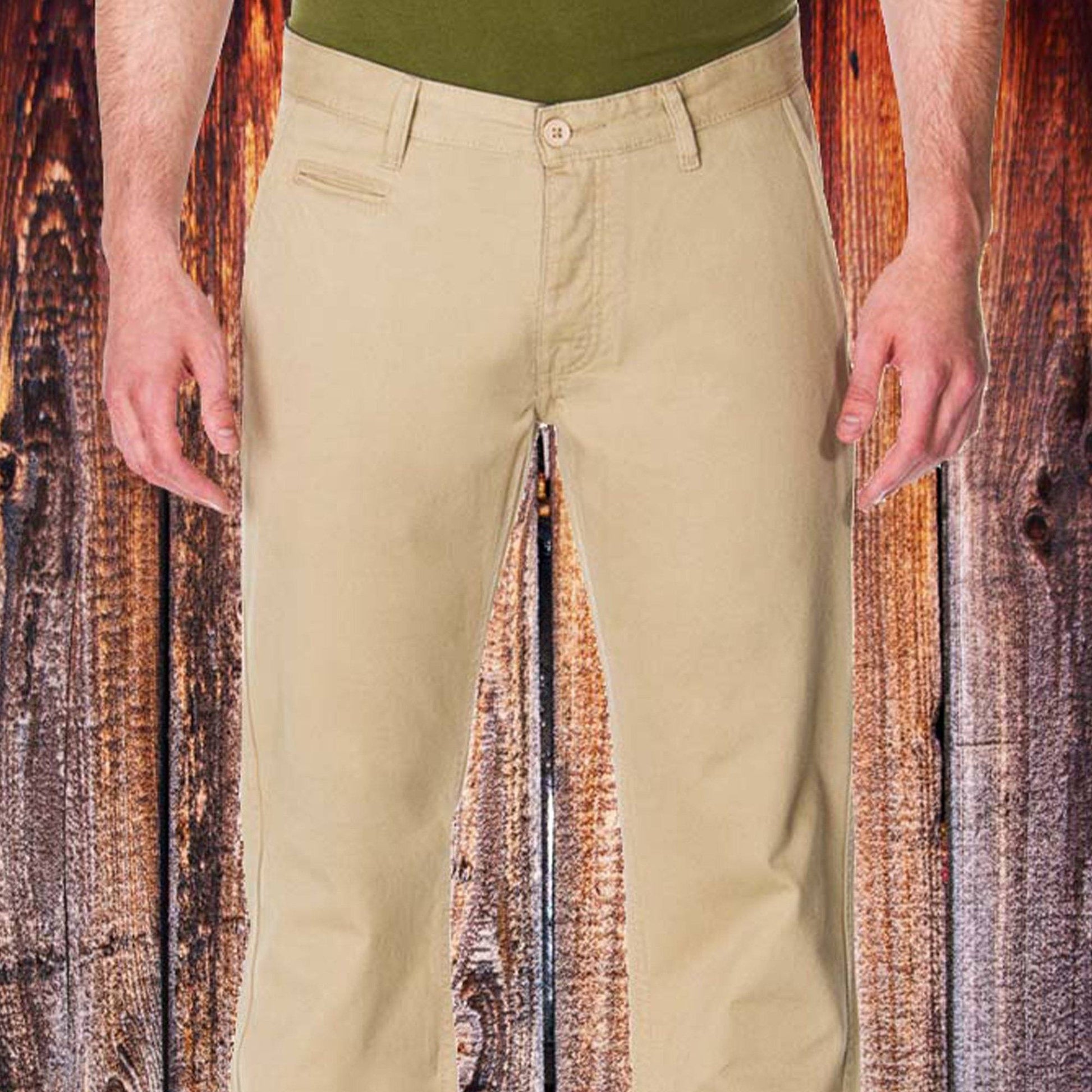 Our signature slim fit men's chino pant looks great, feels comfy and is long-lasting. Great for work or play. Khaki color. Our khaki chino pant is available in waist sizes 30/32/33/34/36/38. Highly spirited and graphically cool, our chino trouser has arrived! These woven trousers are a bold way to enliven your spring wardrobe paired with solids or patterns.