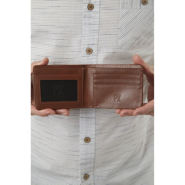 Bi-Fold Vegan Leather Wallet with PX Embossing.