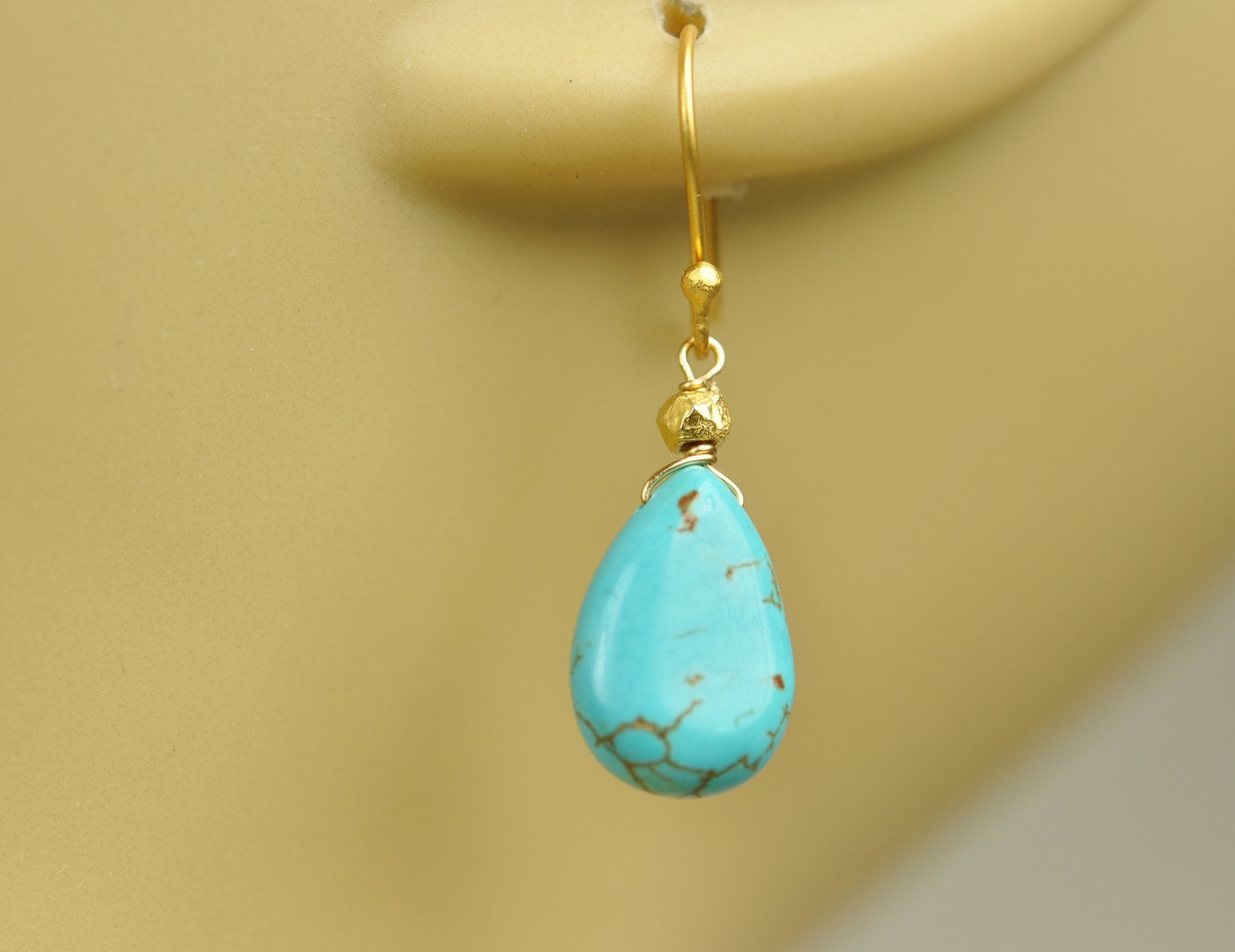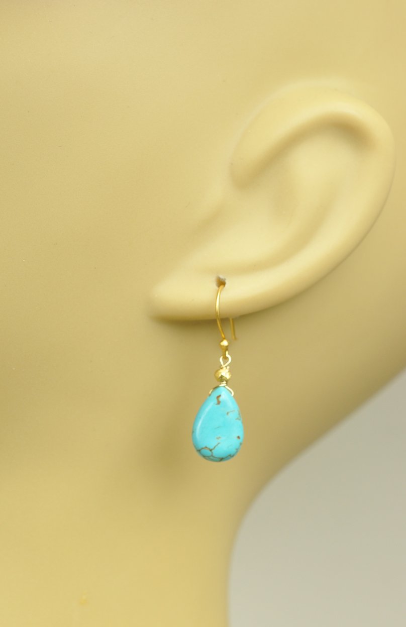 Turquoise Tear Drop Earrings with 18kt Gold Plated Earwires